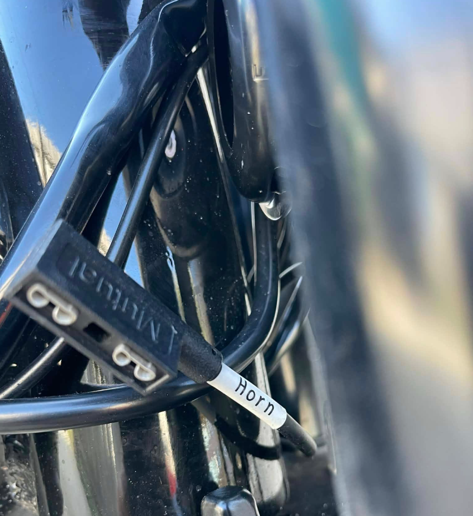 Gently pull a bit more slack from the bike’s wiring so the horn leads have breathing room.